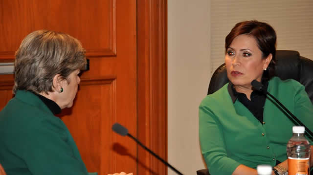 La secretaria de Desarrollo Social, Rosario Robles Berlanga, recibió en visita de trabajo a la secretaria ejecutiva del organismo, Alicia Bárcena Ibarra