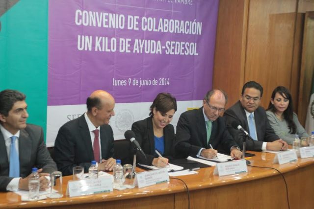 La titular de la Sedesol firmó convenios con Un Kilo de Ayuda, Oxfam, Instituto de Nacional de Ciencias Médicas y Nutrición "Salvador Zubirán", el Banco de Alimentos de México y el Instituto Nacional de Salud Pública