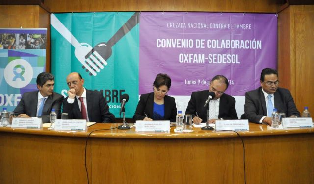 En cuanto al convenio con Oxfam, se dispondrán recursos por 18 millones de pesos, que se canalizarán a programas de coinversión en Chiapas, Guerrero y Oaxaca para impulsar modelos de desarrollo local que contribuyan a la erradicación del hambre, incentivar las acciones comunitarias de agricultura familiar y fortalecer la interlocución.