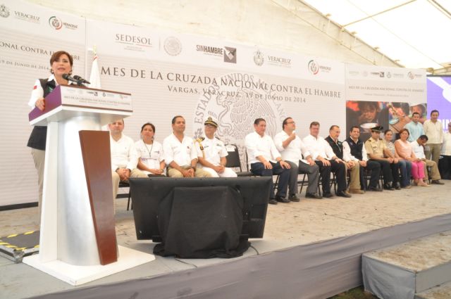 Informó que como parte del esfuerzo de la estrategia del Gobierno de la República para abatir el hambre y la desigualdad, en Veracruz 24 mil familias recibieron ya la tarjeta del Esquema de Apoyo Alimentario SINHambre, y más de 200 mil veracruzanos se incorporaron al Programa de Abasto de Leche Liconsa.