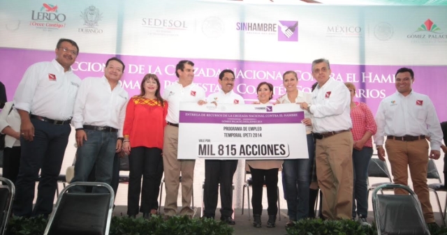 Durante el evento se dieron a conocer los avances de acciones de la Cruzada Nacional Contra el Hambre, se tomó protesta a los Comités Comunitarios de Gómez Palacio y Lerdo, y la Secretaria de Desarrollo Social entregó cheques a los destinatarios de los programas para el Desarrollo de Zonas Prioritarias, Empleo Temporal, Pensión para Adultos Mayores y Seguro de Vida para Jefas de Familia.