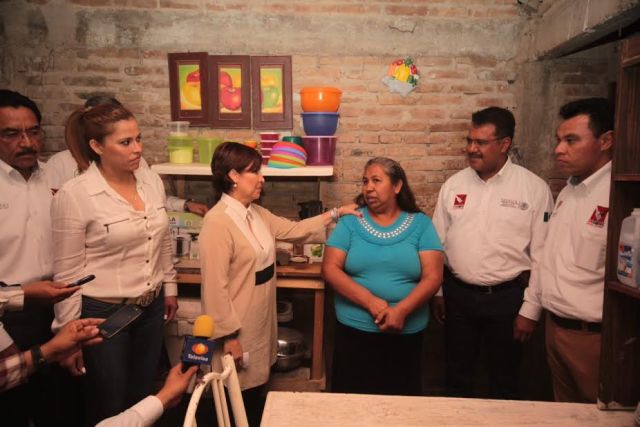 La Secretaria de Desarrollo Social, Rosario Robles Berlanga, fue recibida en casas que fueron reconstruidas con materiales proporcionados por el Programa para el Desarrollo de Zonas Prioritarias de la Sedesol