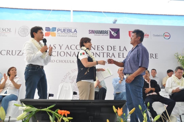 De ahí, la Secretaria Robles Berlanga se trasladó a San Andrés Azumiatla y a San Pedro Cholula, donde otorgó apoyos a destinatarios de los programas sociales de la Sedesol y dio a conocer las modificaciones realizadas a las reglas de operación de programas como Oportunidades, Pensión para Adultos Mayores, Empleo Temporal y Liconsa, entre otros, así como la creación del Seguro de Vida para Jefas de Familia.