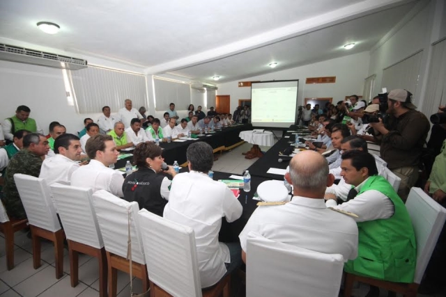 Durante la reunión, efectuada en la Base Naval de Tapachula, el gobernador Velasco Coello agradeció el respaldo de la Federación, de manera oportuna, porque en menos de 24 horas llegó la ayuda del Fonden a las zonas afectadas para apoyar a la población.