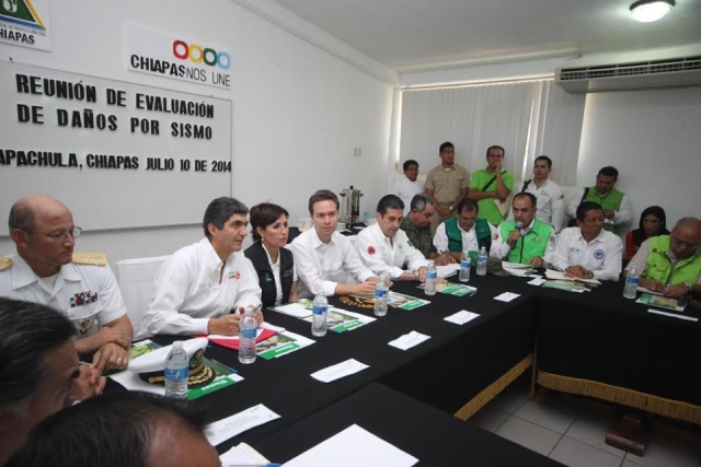 En la reunión de evaluación también estuvieron Ernesto Nemer, Subsecretario de Desarrollo Social y Humano de la Sedesol; Luis Manuel García Moreno, Director General del Instituto de Protección Civil de Chiapas, y los delegados federales.
