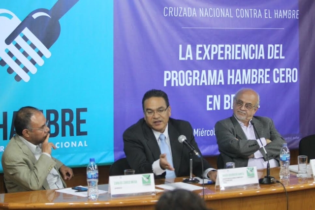 Al lado también del Subsecretario de Desarrollo Comunitario y Participación Social de la Secretaría de Desarrollo Social, Javier Guerrero García, y del Director de Oxfam México, Carlos Zarco Mera, el experto brasileño destacó el compromiso del Presidente Enrique Peña Nieto; de las dependencias federales y estatales involucradas, de legisladores y académicos, por construir una plataforma común para enfrentar la carencia alimentaria y el hambre.
