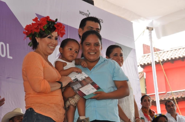 Seguidamente, la Secretaria Rosario Robles acreditó los compromisos cumplidos del Presidente Enrique Peña Nieto, como la Pensión para Adultos Mayores y el Seguro de Vida para Jefas de Familia, así como el crecimiento del Programa de Desarrollo Humano Oportunidades, el cual prospera para becar a los jóvenes hasta terminar la Universidad y les da la oportunidad de ingresar al Servicio Nacional de Empleo.