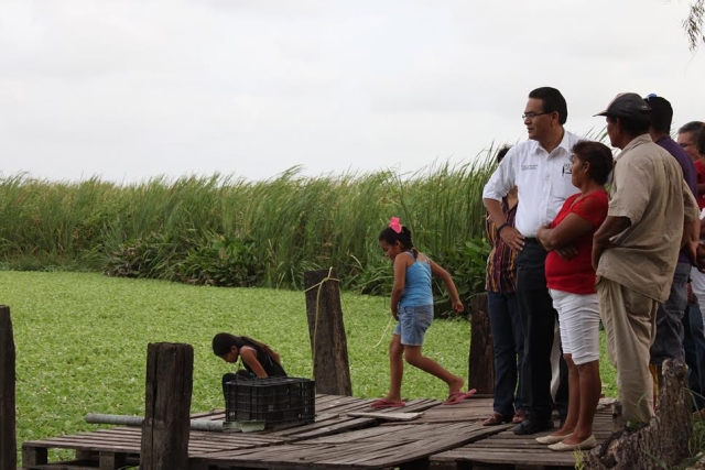 Posteriormente recorrió la laguna de la colonia donde, además de cultivar mojarra tilapia, se realizan acciones de limpieza para extraer el lirio acuático, el cual es aprovechado para producir composta para los invernaderos.