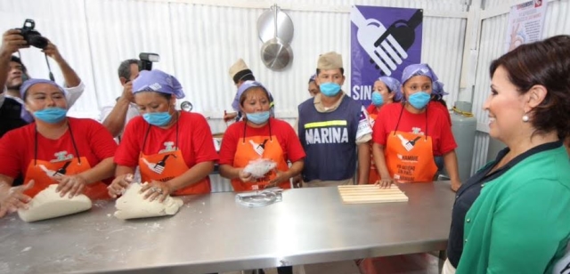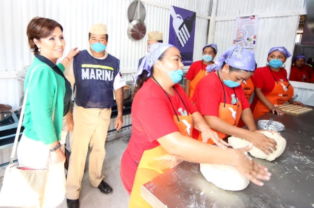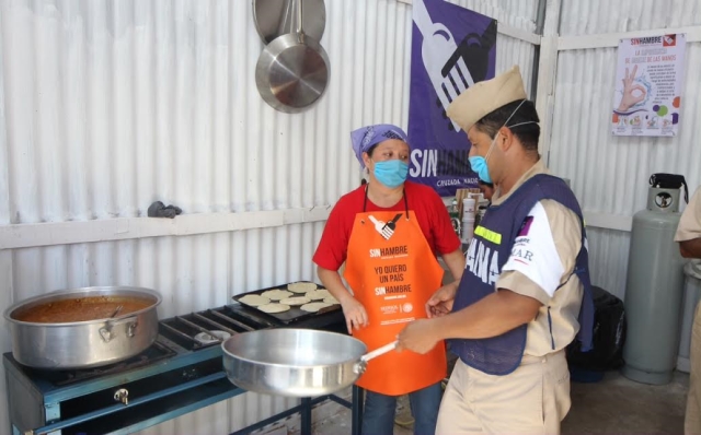 En el Comedor Comunitario de la colonia 24 de Junio, elementos de la Armada apoyaron en la instalación del comedor y actualmente capacitan a las mujeres en la preparación de alimentos.