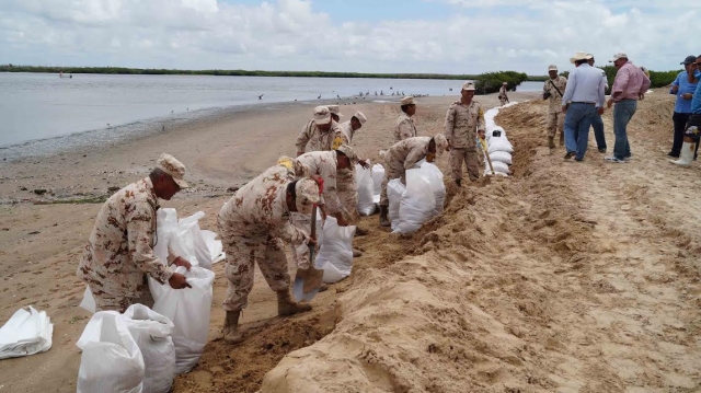 En el comedor de Puerto San Carlos, municipio de Comondú, personal de la Marina Armada de México atendió a 568 personas evacuadas, de las cuales 200 continúan albergadas hasta la fecha.