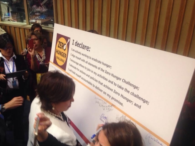 En la Reunión Paralela de Alto Nivel "Alcanzando el Reto del Hambre Cero", donde fue la única participante latinoamericana, la Titular de la Sedesol resaltó: "México otorga toda la relevancia a la Iniciativa Hambre Cero impulsada por el Secretario General de las Naciones Unidas, Ban Ki-Moon, y nuestro país se ha sumado a ella por su clara convergencia con la Cruzada Nacional Contra el Hambre".