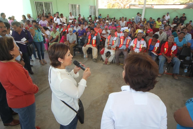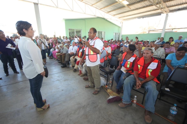 La Secretaria Robles Berlanga, al lado de la Presidente Municipal de La Paz, Estela Ponce; del secretario estatal de Desarrollo Social, Joel Ávila, y de la Delegada de la Sedesol, María Luisa Araceli Domínguez, informó que el PETI fue puesto en marcha desde el primer día de la contingencia ocasionada por “Norbert” y sigue con “Odile”, lo cual ha permitido que sus familias tengan un ingreso, al tiempo que hacen labores de limpieza en sus casas y en la comunidad, para evitar enfermedades.