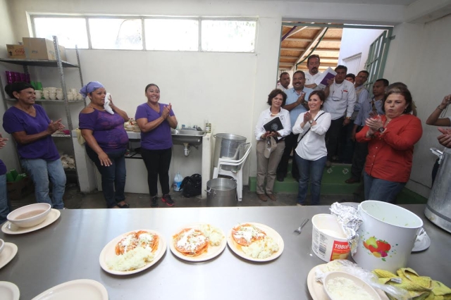 La Secretaria Rosario Robles dijo a los vecinos de Todos Santos que un factor fundamental para ayudar a la población han sido los 38 comedores comunitarios, donde a diario se sirven casi 11 mil raciones, para un total hasta hoy de 161 mil 283 servicios.