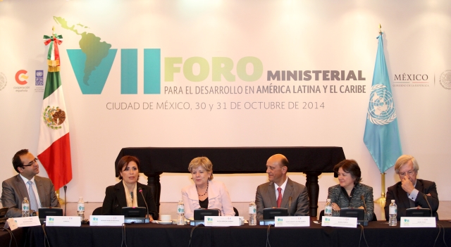 Ciudad de México, 31 de octubre de 2014. – Tras dos días compartiendo experiencias en políticas públicas de erradicación de la pobreza, los más de 30 ministros, ministras y especialistas de América Latina y el Caribe cerraron hoy el 7º Foro Ministerial de Desarrollo con el compromiso de mejorar los instrumentos de distribución de ingreso y fortalecer sus instituciones para asegurar mejores resultados sociales.