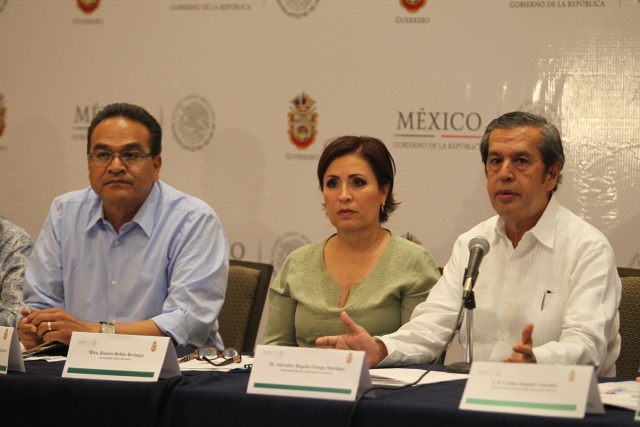 La Secretaria Robles Berlanga, el Gobernador Interino del Estado de Guerrero, Salvador Rogelio Ortega Martínez y el Subsecretario de Desarrollo Comunitario y Participación Social de la Secretaría de Desarrollo Social, Javier Guerrero García, escucharon las acciones a seguir en materia de turismo y actividades culturales, así como artísticas, los avances en la aplicación de recursos del Fondo de Desastres Naturales (Fonden) y las actividades del Programa IMSS – Prospera en el Estado.