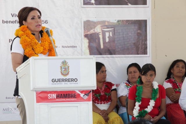 ALCOZAUCA, TLAPA DE COMONFORT, Gro., a 6 de noviembre de 2014.- Al realizar su primera gira de trabajo en el estado, con el Gobernador Interino, Rogelio Ortega Martínez, para coordinar las acciones del Plan Nuevo Guerrero, la Secretaria de Desarrollo Social, Rosario Robles Berlanga, informó que la zona de la Montaña del Estado, hoy cuenta con la inversión más grande de su historia, para revertir la pobreza y desigualdad que siempre la ha caracterizado y recalcó que los guerrerenses no están solos, porque el Gobierno de la República y el Gobierno de Rogelio Ortega están con ustedes, porque Guerrero necesita paz y reconciliación para salir adelante y tener un camino de prosperidad, desarrollo y bienestar.