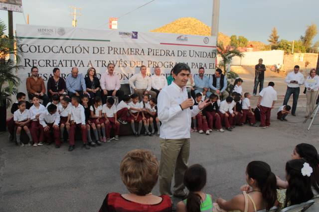 PITIQUITO, SON., a 15 de noviembre de 2014.- Implementar programas y acciones que contribuyan a la formación de valores en la niñez y juventud es prioridad en la política social de nueva generación impulsada por el Presidente Enrique Peña Nieto, afirmó Ernesto Nemer Álvarez, Subsecretario de Desarrollo Social y Humano de la Secretaría de Desarrollo Social (Sedesol), durante la colocación de la primera piedra de la unidad recreativa “Alfredo Valenzuela Serna”, en este municipio.
