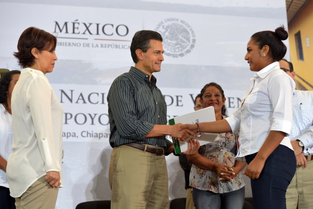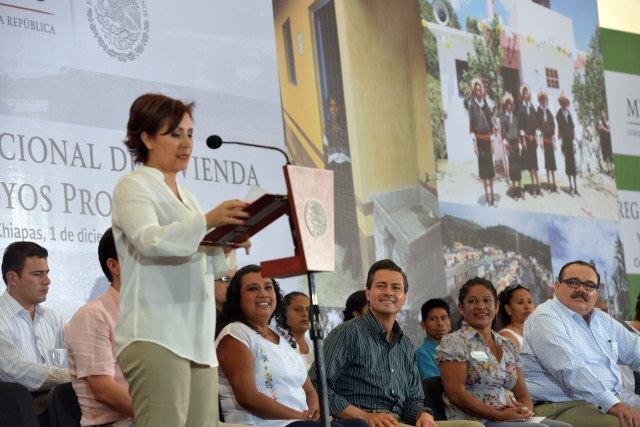 En el evento donde se entregaron acciones de vivienda del Fideicomiso del Fondo Nacional de Habitaciones Populares (Fonhapo) y apoyos de Prospera, Programa de Inclusión Social, la Titular de la Sedesol se refirió a las 633 mil familias a nivel nacional que ya poseen la Tarjeta SINHambre, la cual les permite adquirir 15 productos básicos de alto valor nutricional en las tiendas Diconsa; de ellas, 70 mil familias son de Chiapas.