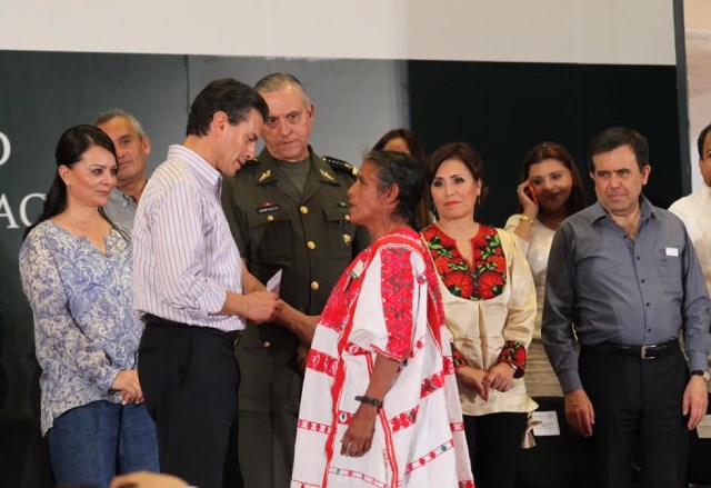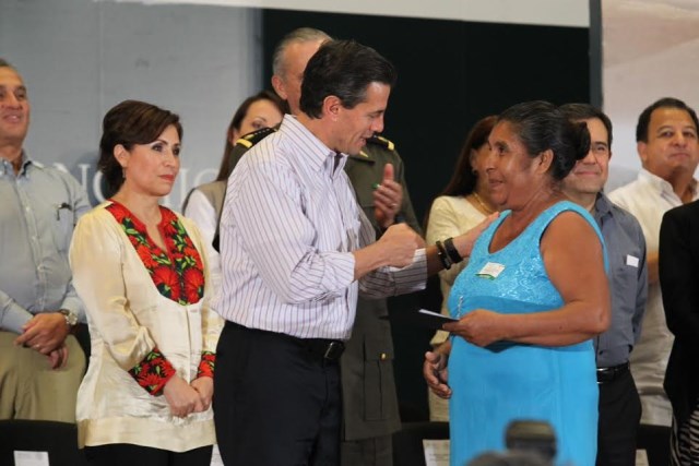 La Secretaria Rosario Robles dio a conocer que en los próximos días se entregara a 32 mil familias más la Tarjeta SINHambre, las cuales se sumarán a las 46 mil que ya intercambian sus transferencias monetarias por 15 alimentos con alto valor nutricional en las tiendas Diconsa; además, la CDI entrega arroz, frijol, sal y otros productos mes a mes, en apoyo de 15 mil familias indígenas.