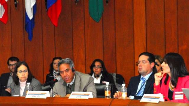 MÉXICO, D. F., a 11 de diciembre de 2014.- México avanza en la construcción de un sistema ampliado de protección social con la visión de que los derechos sociales se cumplan efectivamente y no se queden en el papel, afirmó Enrique González Tiburcio, Coordinador de Asesores de la Secretaría de Desarrollo Social (Sedesol), al participar en el Taller intersectorial sobre protección social y empleo, organizado de manera conjunta por la Sedesol, la Secretaría del Trabajo y Previsión Social (STPS) y la Organización de los Estados Americanos (OEA).