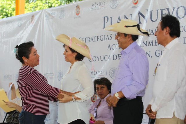 COYUCA DE CATALÁN, GRO., a 16 de diciembre de 2014.- “El compromiso del Presidente Enrique Peña Nieto es convertir a Guerrero en un mejor estado, con desarrollo, paz, armonía y, sobre todo, menos pobreza y desigualdad, que es lo que exigen los habitantes de la entidad”, afirmó la Secretaria de Desarrollo Social, Rosario Robles Berlanga, al encabezar la entrega de apoyos del Programa de Empleo Temporal a 13 mil 30 familias de Tierra Caliente, Guerrero.