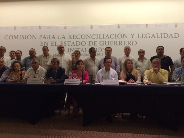 ACAPULCO, GRO., a 29 de enero de 2015.- La secretaria de Desarrollo Social y responsable de la Región 1 del Programa de Atención a las Entidades Federativas, Rosario Robles Berlanga, atestiguó este mediodía la instalación de la Comisión para la Reconciliación y Legalidad en el estado de Guerrero, así como la toma de protesta a sus integrantes.