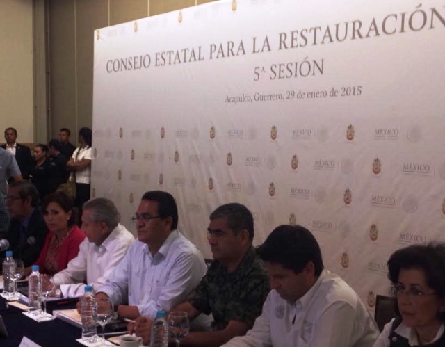 En la reunión estuvieron Miguel Alemán Velasco, presidente del Consejo de Restauración; Javier Guerrero García, subdelegado de Desarrollo Comunitario y Participación Social de la Sedesol; general DEM Alejandro Saavedra Hernández, comandante de la IX Región Militar; Marcela Velasco González, subsecretaria de Administración y Finanzas, de la Secretaría de Salud; Raúl Murrieta Cummings, subsecretario de Comunicaciones y Transportes; Angel Enrique Sarmiento Beltrán, comandante de la VIII Región Naval de Acapulco; José María Tapia Franco, director general del Fondo de Desastres Naturales, y José Manuel Armenta Tello, delegado de la Sedesol, entre otros.