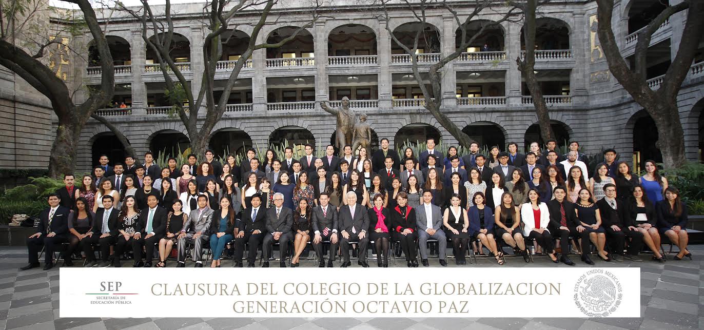 El director general del Instituto Mexicano de la Juventud (Imjuve), José Manuel Romero Coello, afirmó que la graduación de los 100 jóvenes del Colegio de la Globalización, Generación Octavio Paz 2014, es la realización de un esfuerzo coordinado entre la Sedesol, la Secretaría de Educación Pública y el Imjuve, para preparar a mexicanos y mexicanas jóvenes que generan sus propias historias de éxito con el conocimiento de las agendas y actividades de organizaciones multinacionales e instituciones como la Comisión Económica para la América Latina (CEPAL), el Banco Mundial, la Organización de Estados Americanos (OEA), la Organización de las Naciones Unidas (ONU), el Wilson Center y el Departamento de Estado.