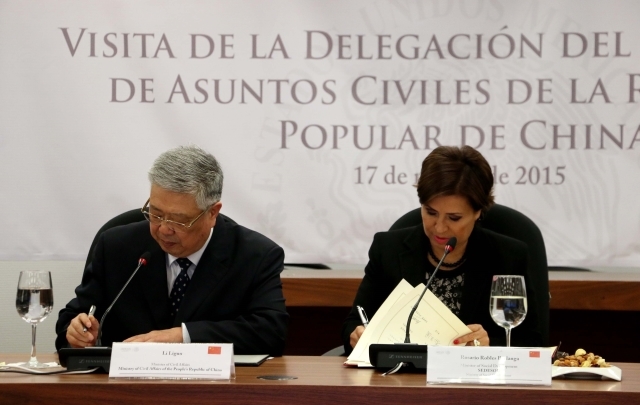 El gobierno del Presidente Enrique Peña Nieto fortalece la relación de cooperación con la República Popular China para convertirla en una asociación estratégica integral, en el marco de un México con Responsabilidad Global, afirmó la secretaria de Desarrollo Social, Rosario Robles Berlanga, al suscribir con el ministro de Asuntos Civiles de la República Popular China, Li Liguo, un Acuerdo de Cooperación Técnica sobre Asistencia y Bienestar Social.