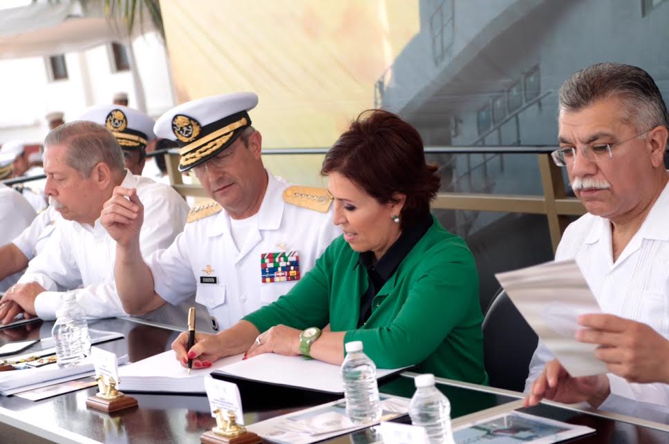 La labor de la Armada de México fortalece a las instituciones, la gobernabilidad, la democracia y la paz social, porque es puntal en la atención de los mexicanos más vulnerables, aquellos en condiciones de pobreza y con carencia alimentaria, y quienes han sufrido los embates de desastres naturales, afirmó la secretaria de Desarrollo Social, Rosario Robles Berlanga, al amadrinar la botadura de la Patrulla Costera ARM "UXMAL (PC-335)", construida en el Astillero de la Marina (Astimar).