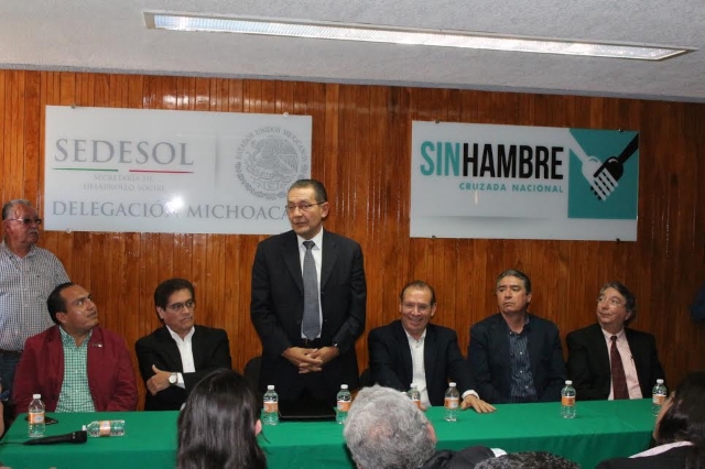 En representación de la secretaria Robles Berlanga, el coordinador de delegaciones de la Sedesol, Pedro de León Mojarro, destacó los avances logrados con la Cruzada Nacional Contra el Hambre, pero como es mucho lo que falta por hacer, la primera instrucción al nuevo delegado en Michoacán es hacer el mayor de los esfuerzos para aumentar la mezcla de recursos que permita enfrentar con éxito las carencias alimentaria, de calidad en los espacios de la vivienda, y de servicios como agua, luz y drenaje.