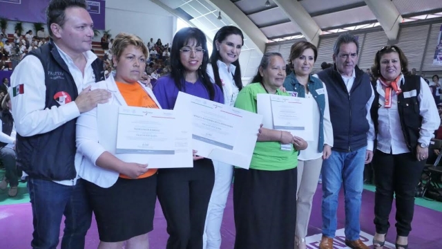 Posteriormente se entregaron apoyos para proyectos productivos y becas del Programa 3x1 para Migrantes; certificados de pisos, techos, muros y cuartos adicionales del Programa para el Desarrollo de Zonas Prioritarias; nombramientos de vocales de PROSPERA, Programa de Inclusión Social; apoyos del programa Pensión para Adultos Mayores; y un cheque del programa Seguro de Vida para Jefas de Familia.