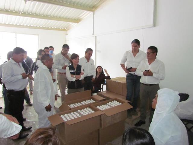Durante el recorrido se mencionó que para la operatividad de las granjas se proporcionaron 2,500 gallinas ponedoras con capacidad productiva de 80 por ciento, módulos de jaulas, insumos de limpieza, herramientas, un vehículo de transporte, indumentaria sanitaria y equipo de oficina.