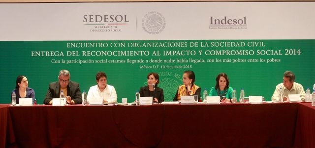 Durante el evento, la Secretaría de Desarrollo Social (Sedesol), a través del Instituto Nacional de Desarrollo Social (Indesol), reconoció el trabajo de organizaciones de la sociedad civil que durante 2014 realizaron acciones para mejorar las condiciones de vida de grupos en vulnerabilidad, como parte de la política social de nueva generación del Gobierno de la República.