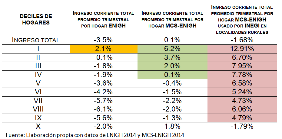 con la ENIGH y el MCS-ENIGH 2012 -2014, nacional 2010-IV a 2015 I