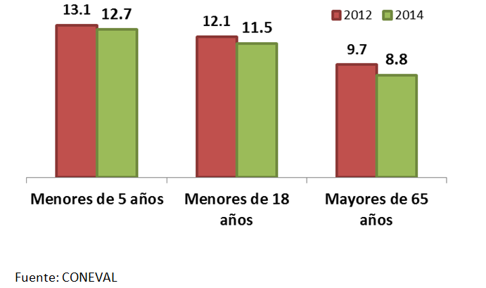 Gráfica 4. Evolución de porcentaje en pobreza extrema por grupos de edad