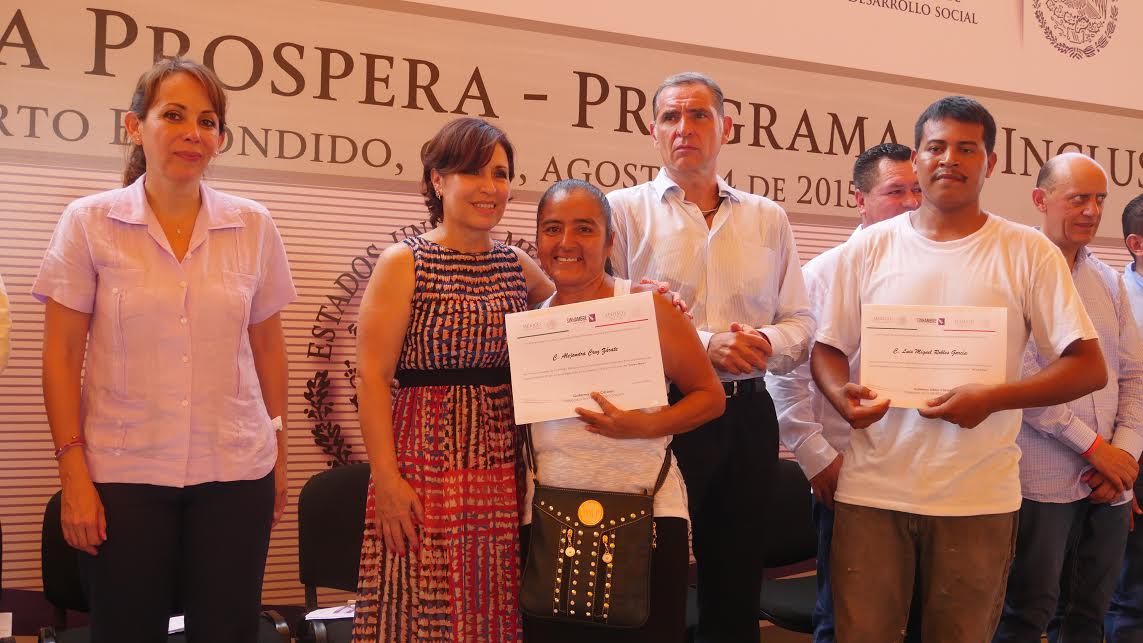 Acompañaron a la secretaria de Desarrollo Social el subsecretario de Planeación, Evaluación y Desarrollo Regional de la Sedesol y responsable de la Cruzada Nacional contra el Hambre en la entidad, Juan Carlos Lastiri Quirós; la coordinadora nacional de Prospera Programa de Inclusión Social, Paula Hernández Olmos; el director general de Liconsa, Héctor Pablo Ramírez Puga Leyva; el delegado de Sedesol, Guillermo Alfaro Cázares; el delegado de Prospera, Jorge Zárate Medina, y el presidente municipal de San Pedro Mixtepec, Antonio Aragón Roldán.