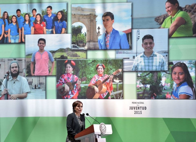 La juventud mexicana está lista para sumarse a las grandes tareas de la agenda nacional, como la promoción de la salud, la generación de empleos, la reconstrucción del tejido social y comunitario, la promoción de la paz y la seguridad, afirmó la secretaria de Desarrollo Social, Rosario Robles Berlanga, durante la entrega del Premio Nacional de la Juventud 2015.