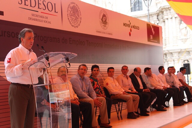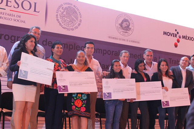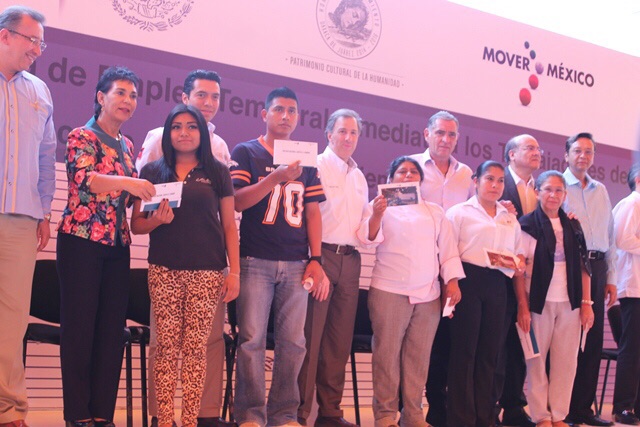 "Hemos realizado el pago del Programa de Empleo Temporal Inmediato a cargo de la Secretaría de Desarrollo Social del Gobierno Federal en reconocimiento al esfuerzo que diariamente realizan estos trabajadores cuyas fuentes de empleo se han visto afectadas por bloqueos, marchas y plantones en el primer cuadro de la ciudad de Oaxaca", sostuvo Meade Kuribreña.