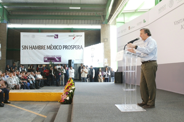 Ante beneficiarios de programas sociales de la Sedesol y trabajadores de esta planta, el secretario Meade Kuribreña destacó que hoy Liconsa llega a 6.5 millones de beneficiarios tanto en zonas urbanas como rurales, al igual que apoya a 9 mil pequeños productores en el impulso a las economías regionales.