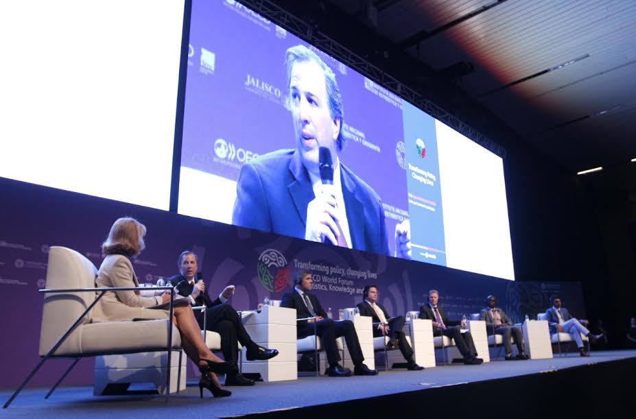 En el marco del 5º Foro de la Organización para la Cooperación y el Desarrollo Económicos (OCDE) sobre Estadísticas, Conocimientos y Políticas, Meade señaló que, pese a los avances registrados en materia de política social, aún queda un largo camino que recorrer para que todos los mexicanos puedan acceder al ejercicio de una ciudadanía plena.
