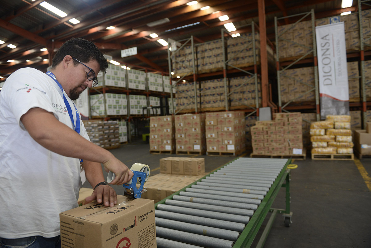 El almacén Diconsa situado en la capital de Jalisco tiene una capacidad para elaborar al menos 10 mil despensas diarias que pueden ser distribuidas en las zonas afectadas por los remanentes del huracán Patricia.