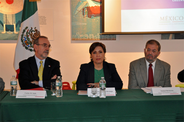 Ante más más de 30 líderes migrantes de la región triestatal (Nueva York, New Jersey y Connecticut), acompañada por el cónsul general de México en Nueva York, Manuel M. Sada, y el director general del Programa 3x1 para Migrantes, Samuel Berkstein, la funcionaria federal refrendó el compromiso del presidente Enrique Peña Nieto por recoger sus demandas, pero también les pidió impulsar con determinación la Cruzada Nacional Contra el Hambre.