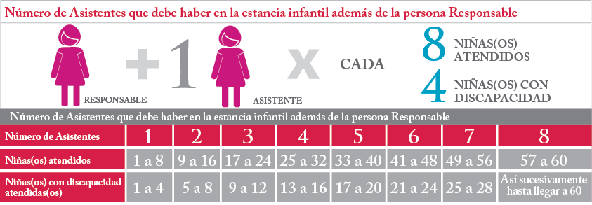 Cada estancia infantil afiliada a la Red cuenta con asistentes de acuerdo al número de niñas y niños que se atienden. Estas se encuentran abiertas al público en general pero principalmente a la población beneficiaria de este programa.